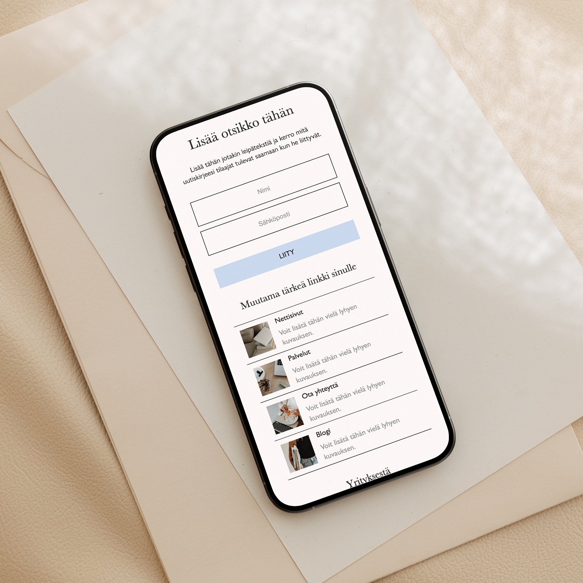 Flodeskissa voit näppärästi luoda erillisen linkkisivun, jonka kautta on helppo liittyä uutiskirjeesi tilaajaksi. Kun sivu on valmis, lisää sen URL oman IG -tilisi bioon. Lataa yllä oleva valmis linkkipuu ilmaiseksi tästä linkistä.